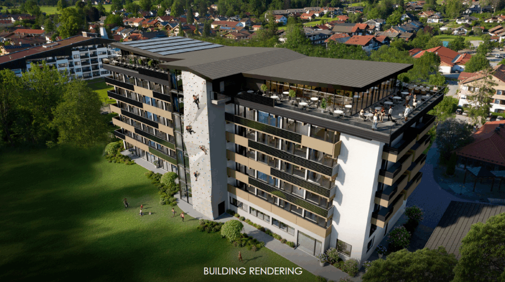 After 17 months of construction, the new Flesslers Lenggries, a Tribute Portfolio Hotel has opened. The former Arabella Brauneck Hotel was extensively renovated and modernized. With the reopening, the hotel has repositioned itself as a boutique hotel with a clear architectural signature in the 70s flair, modern facilities and an extended usage profile. The operator is Signo Hospitality GmbH, based in Essen. The building has six floors, including a newly created top floor with a rooftop bar, restaurants and spa area. A total of 114 guest rooms are available, including six spacious suites with up to 48 square meters and panoramic views. The offer is complemented by 350 square meters of event space and a new apartment building that provides living space for employees. The name “Flesslers” was chosen as a tribute to the traditional craft of rafting on the neighboring Isar river, which once transported timber as far as Vienna.